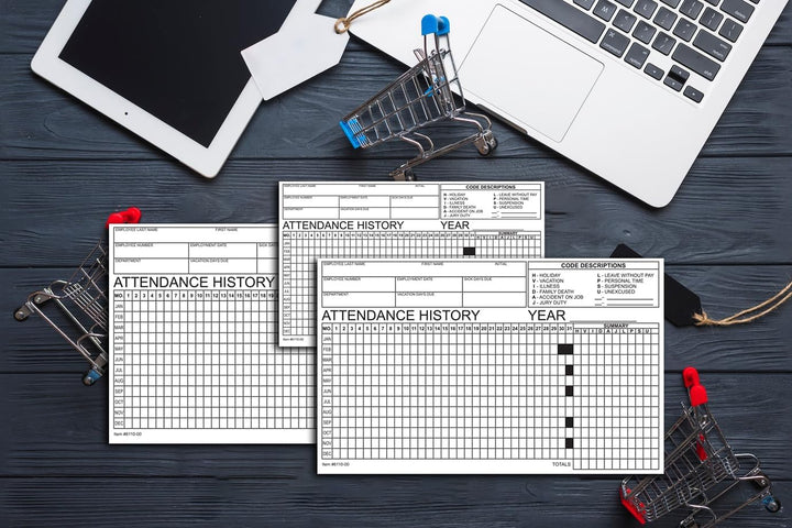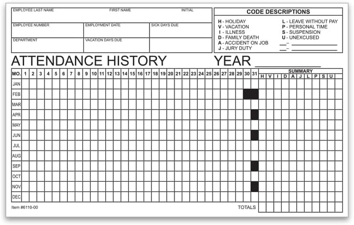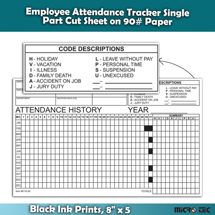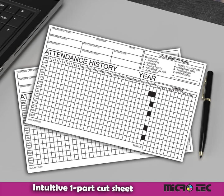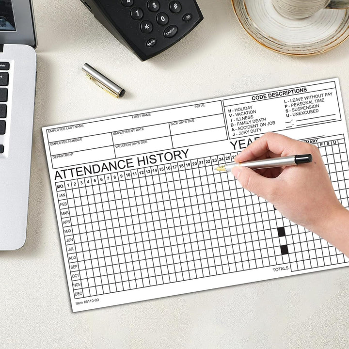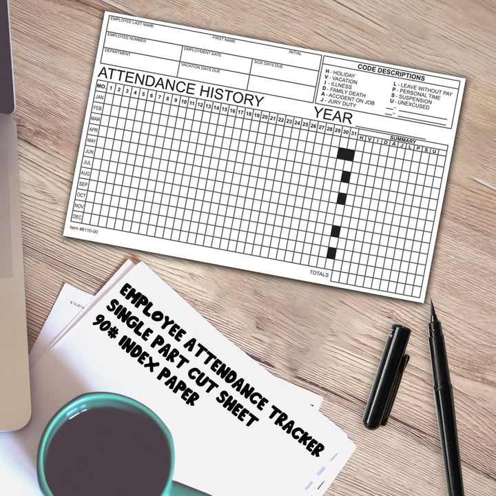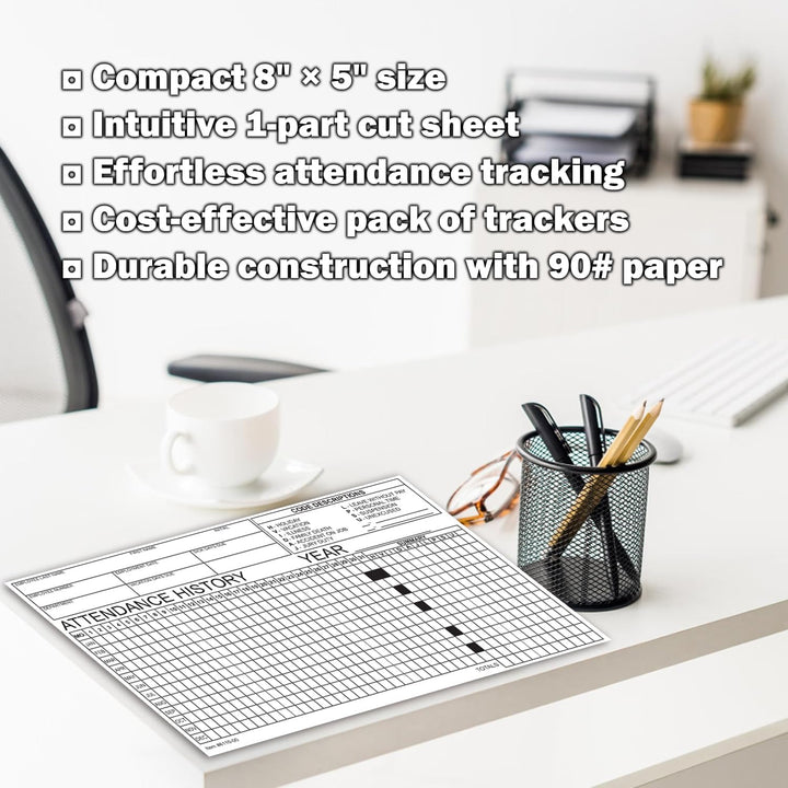 Employee Attendance Tracker - Efficient 1-Part Cut Sheet for Accurate Records - 8" × 5" Dimensions, Durable 90# Index Paper