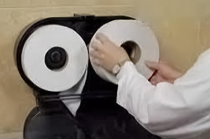 Enhance restroom efficiency and hygiene with our Jumbo Roll Twin Jr. Commercial Bath Tissue Dispenser. Designed to accommodate two rolls of jumbo bath tissue, each up to 9 inches in diameter, this dispenser is perfect for high-traffic environments like office buildings, hotels, and healthcare facilities. The durable polycarbonate smoke cover and polystyrene black base not only ensure longevity but also add a modern touch to any restroom decor. Security is paramount with our dispenser, which includes a key lock mechanism to prevent tampering and unauthorized access. This feature provides peace of mind, knowing that your restroom supplies are protected and maintained at optimal levels.