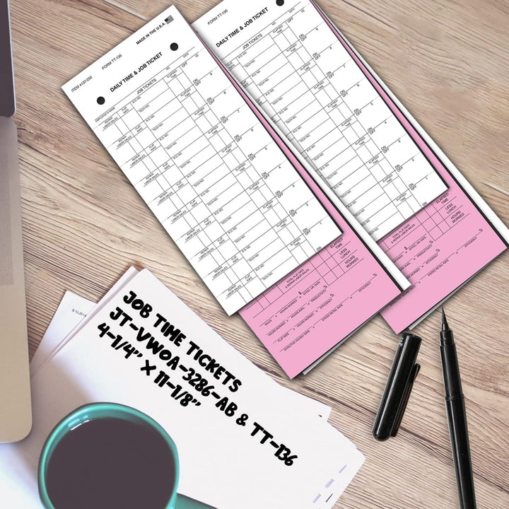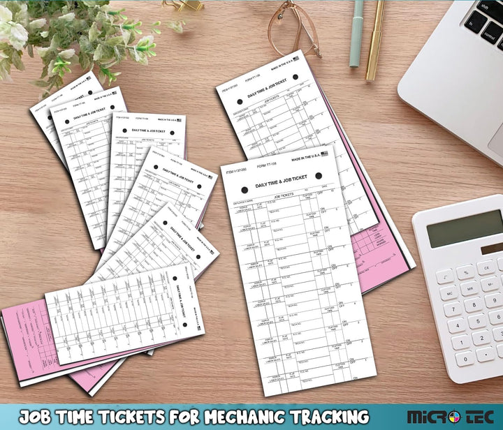 TICKETING SOLUTION: Versatile job time tickets ideal for automotive, construction, and service industries, sized 4-1/4" × 11-1/8" for detailed job tracking and management.