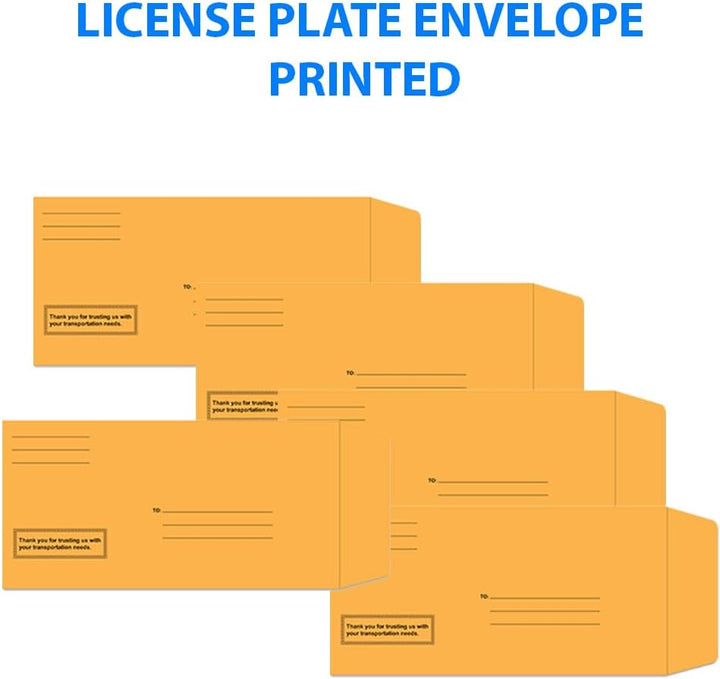 Preprinted License Plate Envelopes with Moist & Seal Closure - 13" x 6-1/2", Perfect Fit for Standard Plates - Durable and Secure for Transit and Storage