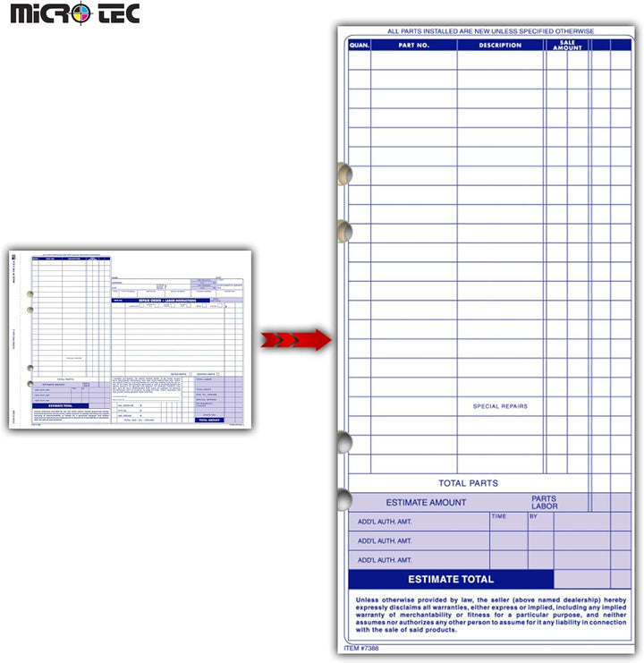 𝐂𝐀𝐑𝐁𝐎𝐍𝐋𝐄𝐒𝐒 𝐂𝐎𝐏𝐘𝐈𝐍𝐆: Featuring carbonless white, canary, and buff tag sheets, these repair orders eliminate the need for messy carbon paper, producing clean and legible copies for all stakeholders.
