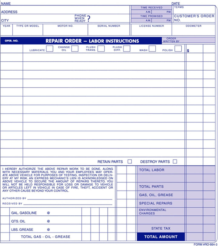 - FORM RO-546H-3PT: Designed with enhanced durability and higher-quality paper, ideal for heavy-duty use in high-traffic service centers.