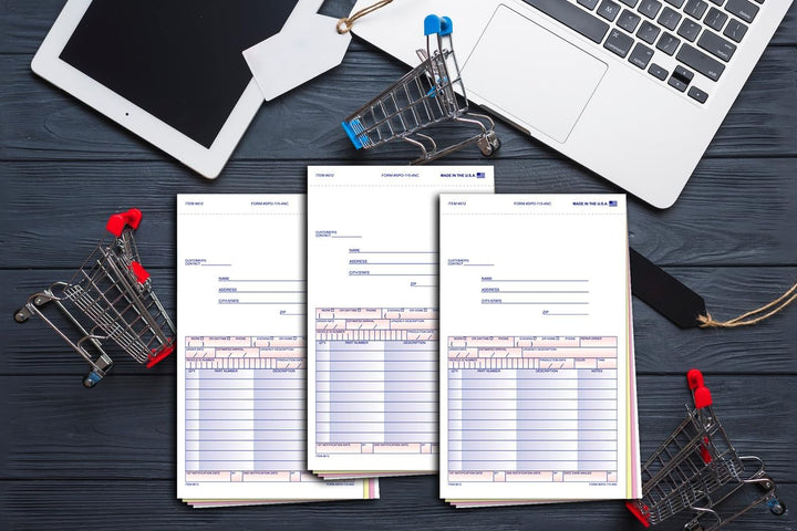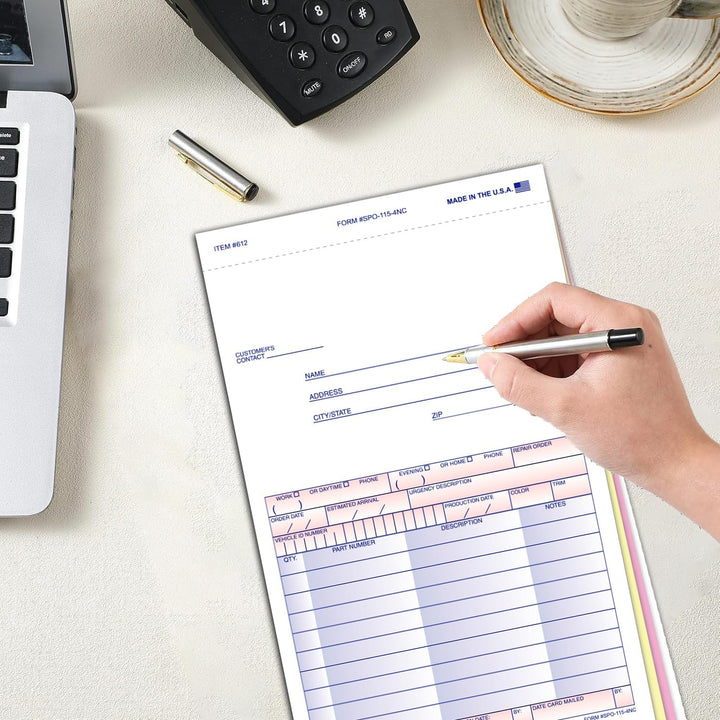 Experience seamless order processing and enhanced customer communication with our Special Parts Order Forms SPO-115-4NC. Crafted for businesses handling substantial orders like body or engine parts, these forms offer unparalleled versatility and convenience. The last part of these 4-part carbonless forms serves as both a customer message section and a postcard mailer, facilitating direct communication with customers regarding their orders. Crafted from premium carbonless paper-White, Canary, Pink, and White Tag-these forms produce clear, professional duplicates without the mess of traditional carbon sheets. Their efficient snap-out design, coupled with an extra perforation on the last page, ensures easy detachment and handling, streamlining your order processing workflow. Compact yet spacious at 5-2/3" x 9-1/4", these forms capture all necessary order details while remaining convenient to handle, store, and mail. Elevate your order management system with our Special Parts Order Forms SPO-115-4NC and unlock new levels of efficiency and professionalism for your business.